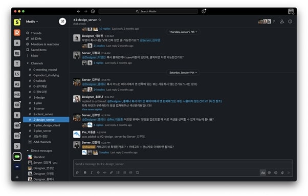 커뮤니케이션에 최적화된 슬랙 화면 구성