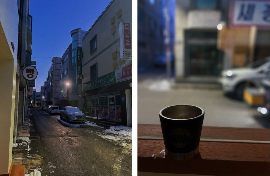 그래도 어쩌랴, 허연 밀가루는 이미 물과 섞여 반죽이 되어버렸고 내 손을 거친 반죽 덩어리는 나란히 서서 오븐 앞에 들어가기만을 기다리고 있을 뿐이다. 애써 노래를 흥얼거렸다. 커피를 찾는 것도 바로 이때쯤이다. 따끈한 커피 한 모금에, 동이 터 오르는 새파란 새벽하늘을 올려다보았다.