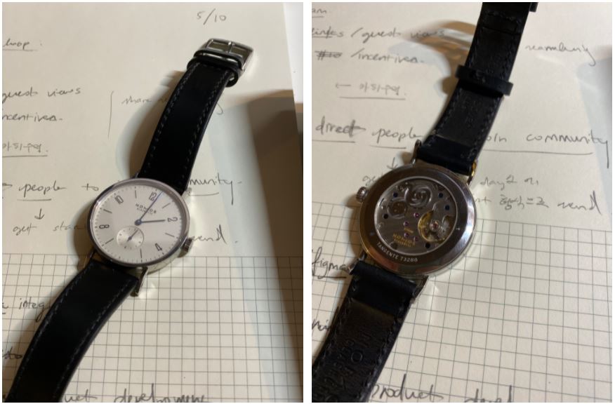 가격도 언급하지 않고 넘어가기가 힘들 만큼 합리적이다. 가장 기본 모델인 Ref.101은 $1,900에 구매할 수 있다 (뒷면이 스테인레스 플레이트로 막혀있다. 사파이어 유리로 마감된 모델은 Ref.139, $2,180이다). 200만 원 남짓에 무브먼트를 포함해 95% 이상의 부품을 자체적으로 개발 및 제조하고, 모든 부품을 직접 조립하며 다른 브랜드와는 달리 독립적인 디자인이 담긴 시계를 판매하는 브랜드는 NOMOS밖에 없다.