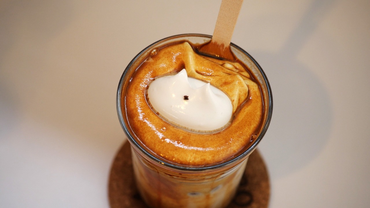 한국인이 가장 사랑하는 마블링. 그것은 소고기, 흑당버블티, 그리고 아인슈페너가 아닐까?태양커피는 인스타그래머블한 커피의 정석 같은 곳이다. 아인슈페너를 라떼 베이스로 만들고 투명한 컵에 담아, 받자마자 사진을 찍고 싶은 비주얼을 완성했다. 우유에 끼얹은 에스프레소가 완전히 섞이지 않고 교묘하게 뒤섞이는 멋진 결을 관찰할 수 있다.