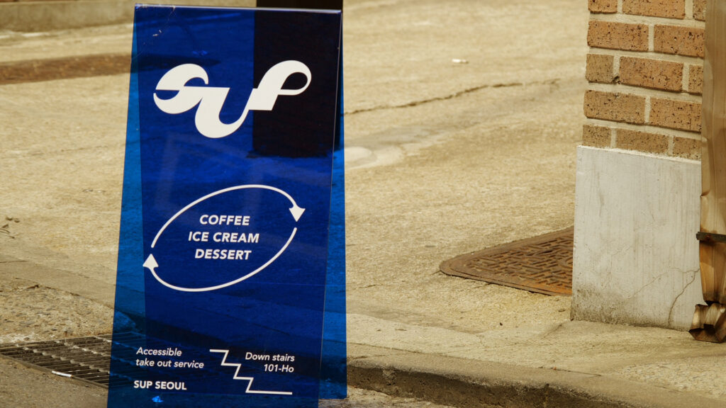 합정역 ‘썹커피’에서는 특별한 비주얼의 아이스크림 라떼를 만날 수 있다. 라떼 위에 아이스크림을 얹고, 여기에 브라운 치즈를 뿌리고, 화룡점정으로 미니 크로플을 꽂았다. 인스타그램 최신유행 리믹스 같은 느낌이랄까?