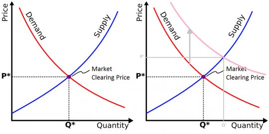 미시경제학의 첫 번째 원칙은 가격은 공급 곡선과 수요 곡선의 교차하는 지점에서 결정된다는 것이다. 수요가 증가하면, 공급이 증가하거나 가격이 상승한다. 공급이 수요를 따라잡으려면 시간이 걸릴 수 있기 때문에 그사이에 가격이 상승한다. 현재 수요가 공급을 앞지르니 물가가 오르는 것은 당연하다.