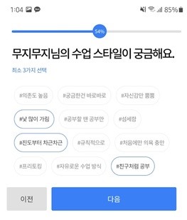 매칭을 신청한 지 한 시간 만에 7명의 선생님들로부터 신청을 받았다. 이제부터는 내가 선택할 시간. 강사 프로필, 약력, 경력, 수업 방식과 지향, 자기소개 영상에 다른 수강생들이 남긴 후기까지 꼼꼼히 검토하며 나와 가장 잘 맞을 것 같은 강사를 선택했다.