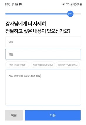 다만 단점도 있다. 휴대폰만으로도 할 수는 있겠지만, 제대로 공부하려면 노트북, 또는 캠이 있어야 한다. 또 줌과 구글독스가 직접 연동이 아니라, 앱 밖에서 따로 구동해야 하는 점도 IT에 익숙하지 않은 분께는 조금 번거로울 수 있다. 물론 강의 진행 자체에 차질이 생길 수준은 아니다.