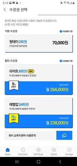 비용은 미리 충전한 포인트를 차감하는 식으로 이뤄진다. 강의료는 선생님의 경력과 약력 등에 따라 산정된다. 다회차를 선택하면 할인을 받아, 저렴하게 외국어 과외를 받을 수 있다. 24회권을 지르면, 30분 1만 원대, 1시간 3만 원대까지 가격이 떨어진다. 대기업에서 B2B 강의를 많이 하신 베테랑 선생님도 30분 2만 원대, 1시간 4만 원대에 수업을 들을 수 있다.