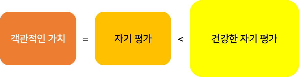 당신은 현재 자신이 가진 장점을 좋게 보기는커녕, 객관적인 가치보다 더 낮게 자신을 평가하고 있을지 모릅니다. 몇몇 글에서 이야기했지만, 자신의 객관적인 모습보다 조금 더 자기를 좋게 보는 것이 오히려 가장 건강한 심리상태입니다. 즉, 약간의 자뻑은 멘탈에 도움이 됩니다. 이는 여유와 자신감을 만들어내니까요. 일단 여러분들은 단계적으로, 자신의 가치에 대해 정확한 평가를 내리는 것이 필요할 겁니다.