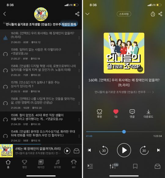 팟캐스트, 책을 통한 매체라 커뮤니티라기보다는 일방향 소통이라고 생각할 거 같지만, 오산이다. 팟캐스트 코너 구성과 댓글을 보면 어느 커뮤니티보다 다양한 의견과 사연이 올라오고 청취자끼리 댓글로 연봉협상, 이직, 커리어성장, 재테크 등 조언을 해주는 커뮤니티가 형성돼 있다. 진행자뿐 아니라 애청자인 사내대주부 님, 왱알 님 등의 연륜이 느껴지는 현명하고 건강한 조언들이 오간다. 그리고 오프라인의 북토크 쇼, 모임이 간헐적으로 열린다.