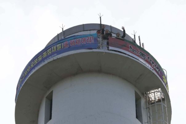 맞아, 나 이런 얘기 뉴스에서 본 적 있어. 사람이 굴뚝 위에 올라가 있던데? 근데 왜 올라간 거야?