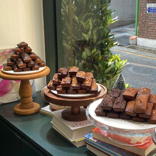 - 후기(식신 일자눈썹): 짙은 녹색의 어닝과 흰색 커튼 등 가게 외관부터 유럽 베이커리 느낌이에요! 피낭시에는 맛도 다양하고 완전 겉바속촉! 얼려 먹어도 맛있어요.