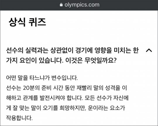 문제는 올림픽 승마와 달리 자기 말을 타고 승마 경기를 치를 수 없다는 점입니다. 근대5종 선수는 대신 경기 시작 20분 전에 자신이 타게 될 말과 첫인사를 나누게 됩니다.