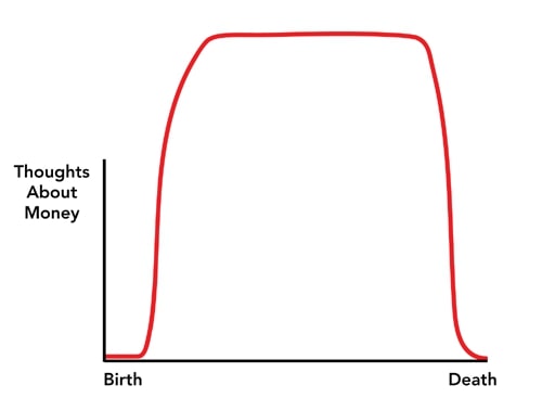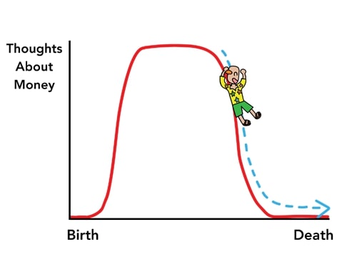 조기에 은퇴한다고 해도 기존의 습관이 계속된다면 돈의 중요성이 줄어들지 않게 된다. 휴대폰을 만질 때마다 여전히 포트폴리오를 확인한다면 돈의 헛됨을 이해하기에는 아직 먼 것이다. 돈 때문에 더 좋은 음식을 먹기가 망설여진다면 여전히 전능한 돈을 신으로 모시는 것이나 마찬가지다. 따라서 그렇게 되면 원래 그림처럼 죽음의 문턱에 도달해서야 돈의 헛됨을 이해하게 될 수 있다.