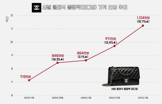 특히 블룸버그에서는 2019년 이후 샤넬의 급격한 가격 인상은 에르메스의 지위를 노리는 거다라는 해석을 내놓기도 했는데요. 일부 상품의 경우, 무려 60%나 가격을 인상했는데 가장 인기 있는 제품 만이라도 에르메스와 비슷한 가격대를 만들려는 시도라는 겁니다.