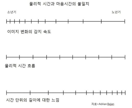 어릴 때 시간이 정말 안 가던 이유는 모르고 지냈지만 시간이 흐른 후 읽은 기사에서 답을 찾았습니다. 어릴수록 뇌가 영상을 저장하는 주기가 짧다고 합니다. 일종의 사진기 같은 우리 뇌가 중학생 때는 1분에 10컷을 찍고 어른이 되면 1분에 5컷을 찍는 거죠. 동일한 시간에 대해 사진을 많이 찍은 만큼 시간이 안 가는 것처럼 느끼게 됩니다.