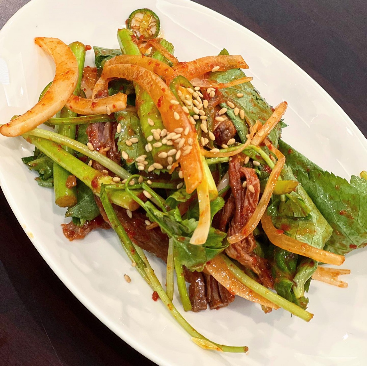 연한 핑크빛이 감도는 신선한 ‘등골’은 들기름과 파, 마늘로 연하게 버무려 먹는다. 젤리 같이 사르르 녹아내리는 식감은 다른 곳에서는 먹어보기 어려운 아이템이니 한 번쯤 먹어보면 좋다.