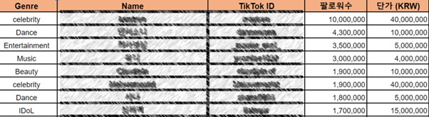 리: 틱톡커 단가 돌아다니는 거 보면 최소 몇백만원씩 하던데요?하민: 저희도 종종 받아보는데, 그 단가표는 많이 부풀려진 거예요. 유튜버나 인스타 인플루언서는, 전업인 경우가 많잖아요? 그런데 틱톡커들은 광고비 많이 받기보다, 자기 컨셉으로 영상을 찍는 그 자체를 즐겨요. 어린 친구들은 자기가 경제활동하는 자체에 즐거움을 얻고 있기도 하고요.