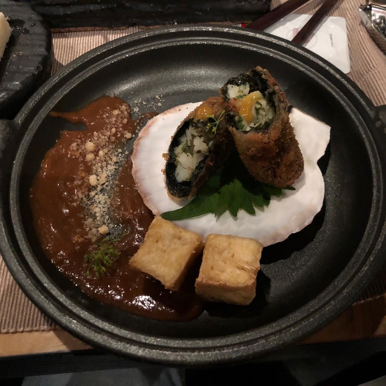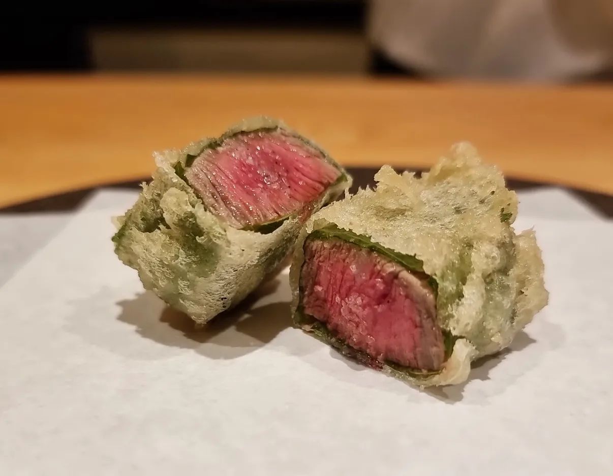 네기도로, 표고, 연근, 새우, 갑오징어, 두릅, 닭 안심, 조린 무, 아나고 등 다양한 제철 식재료가 완벽하게 튀겨져 나온다. 촉촉하게 튀긴 고구마튀김 위에 버터 조각을 올려주는 버터 고구마튀김은 달짝지근하면서 고소한 풍미로 대미를 장식한다.