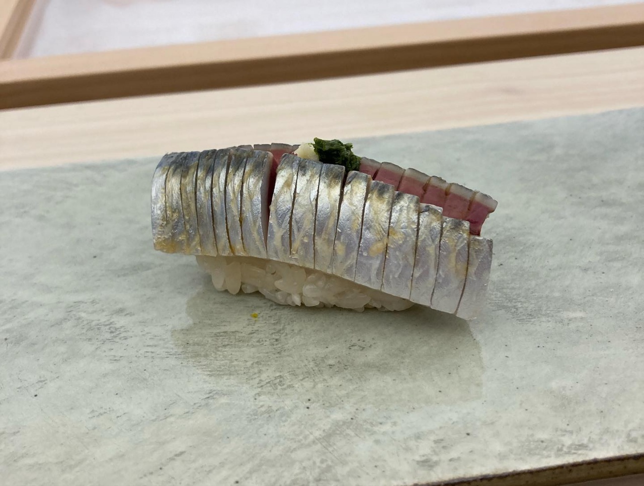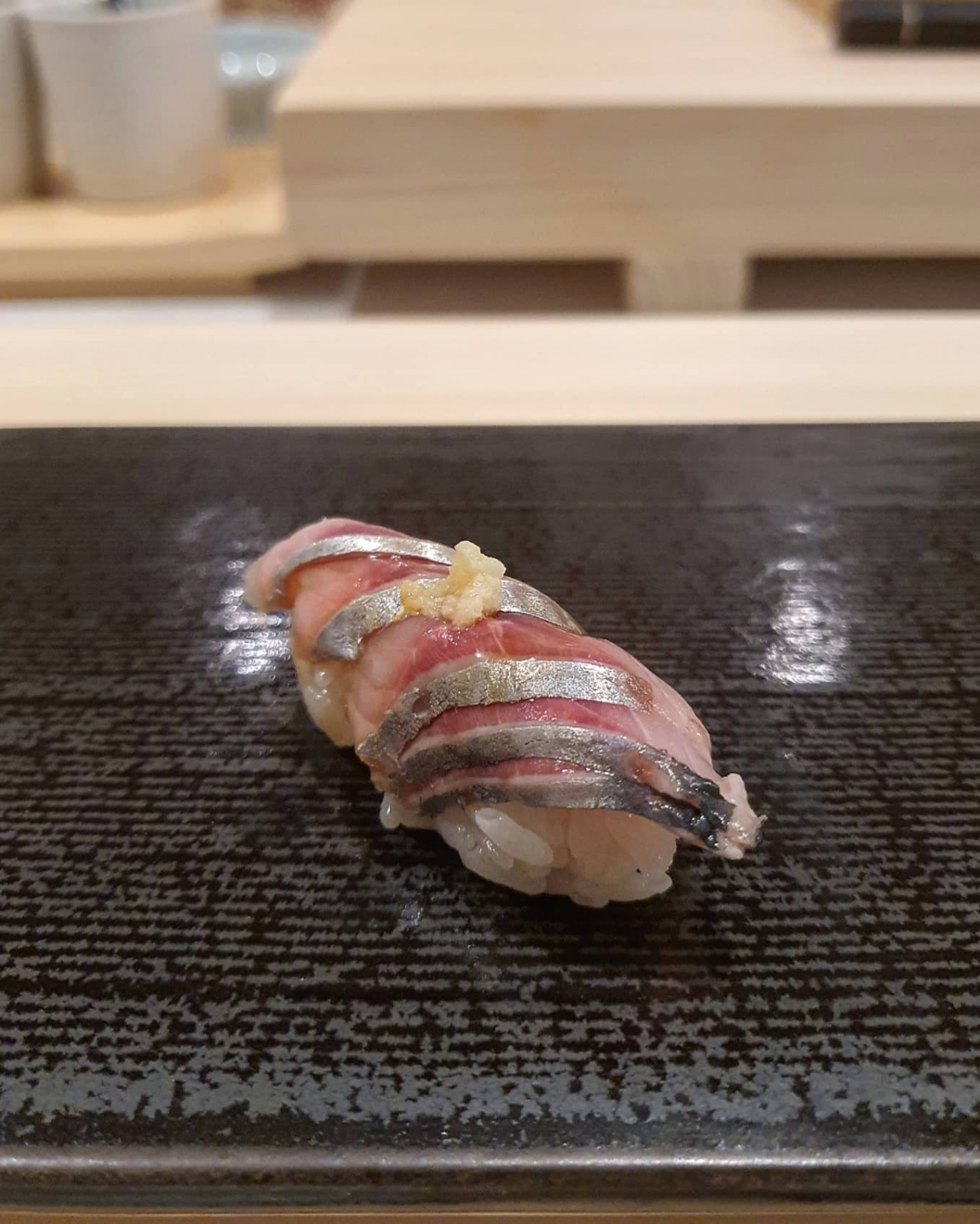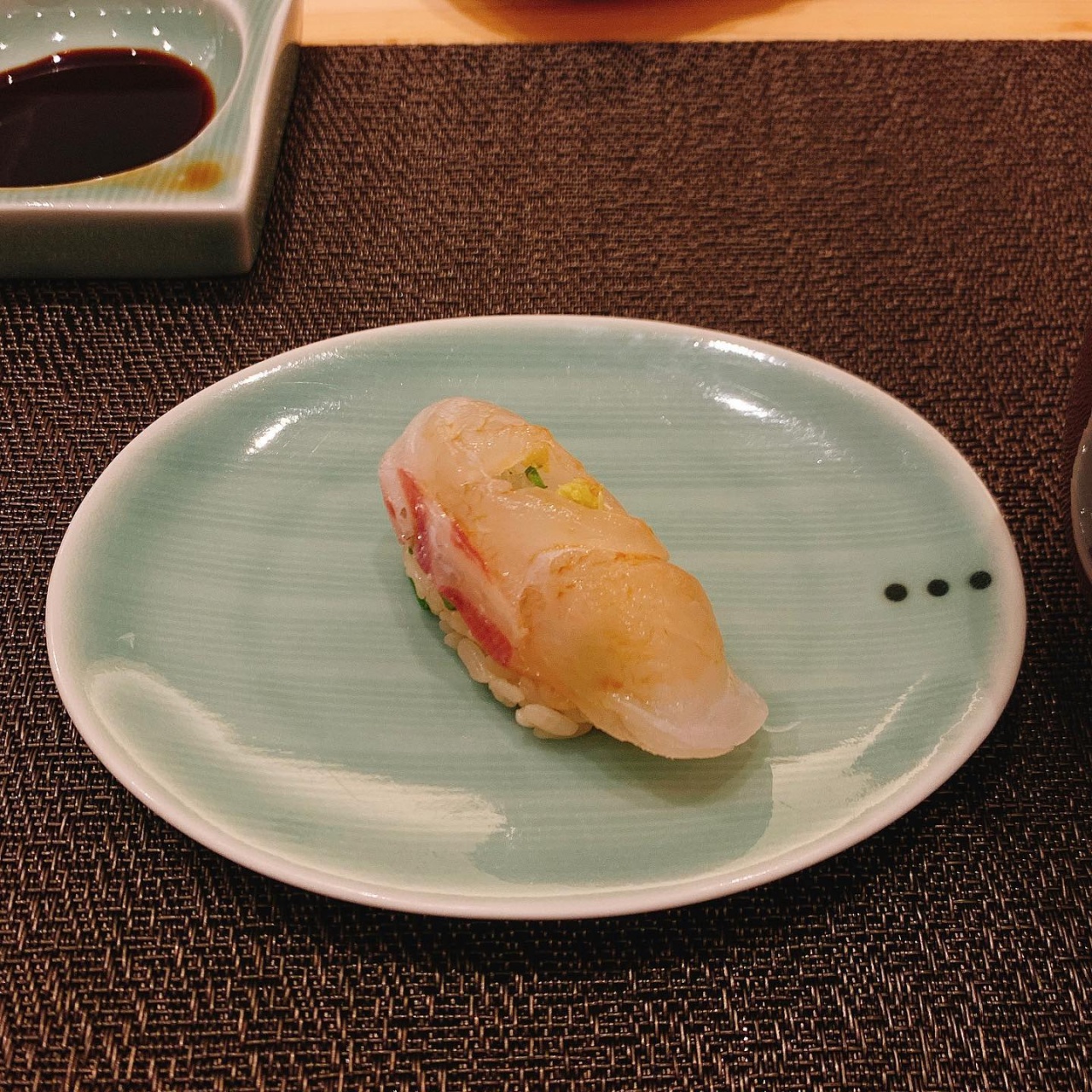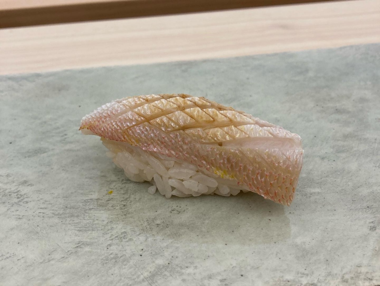 잘 숙성한 감칠맛 좋은 생선과 시즈오카산 뿌리 와사비의 풍미가 어우러져 밸런스가 좋다. 마무리쯤 나오는 금태밥은 고소한 풍미로 풍만한 만족감을 선사한다.