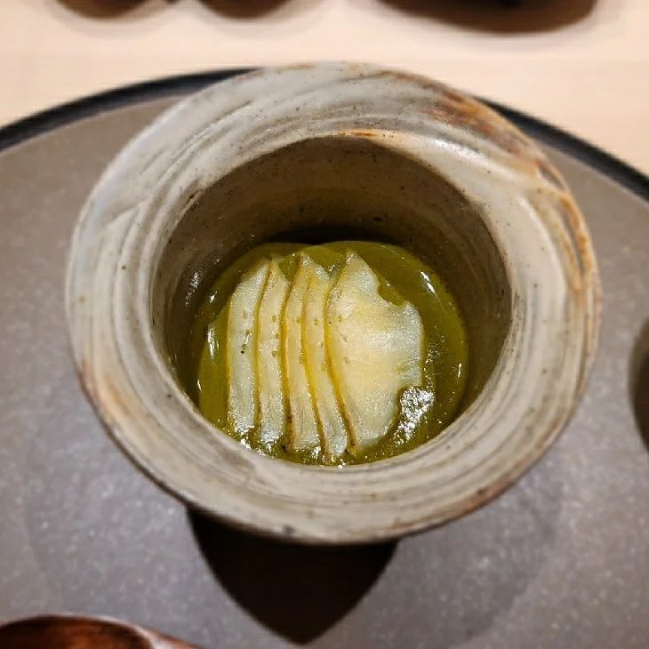 차분하고 정갈한, 기본에 충실한 스시. 구성이 많고 화려하다기보다는 매 디쉬마다 최상급의 원물을 사용하고자 노력한 것이 맛에서 오롯이 느껴진다. 샤리를 포함해 코스 전반적으로 밸런스가 좋다. 흑백의 우아한 공간감이 느껴지는 인테리어도 고급스러운 식사에 점수를 보탠다. 셰프의 편안한 접객은 덤이다.