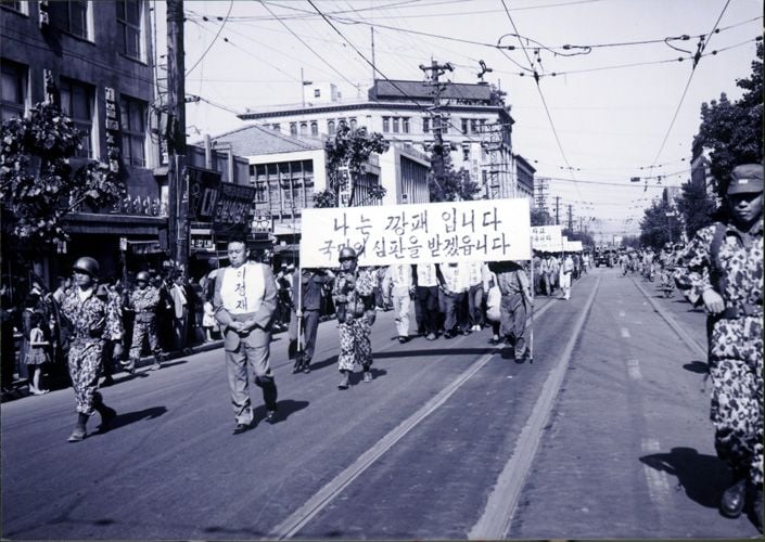 50년대 중반부터는 서대문과 광화문, 소공동의 주먹이 이정재 수하의 유지광과 손을 잡으면서 종로, 명동, 동대문 3파전의 시대가 열립니다. 특히, 동대문의 이정재는 자유당 정권의 유력 인사였던 이기붕 민의원(이후 부통령)과 손을 잡고 정치깡패가 되는데요. 부산 정치파동(1951), 대구 매일신문사 테러 사건(1955) 등이 이들의 작품이었죠.