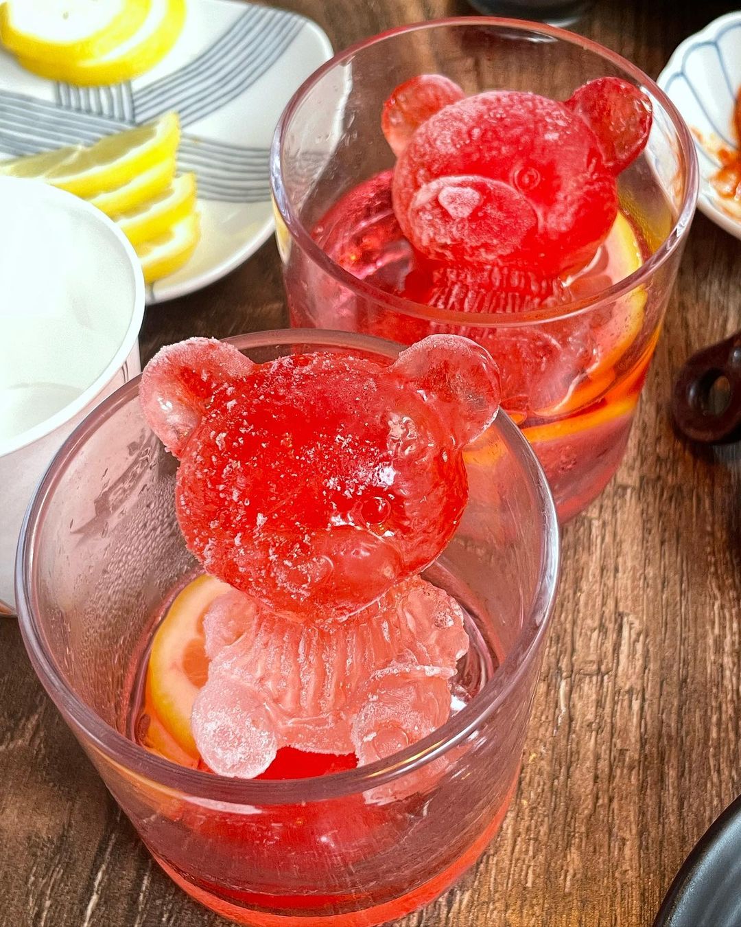 식용색소로 색을 내 은은한 핑크색이 감도는 곰돌이는 달달한 맛이 날 것 같지만 아무 맛이 없단다. 오랜 시간 삶은 스지와 부드러운 아롱사태가 넉넉하게 든 스지탕에 귀여운 곰돌이 얼음이 퐁당 빠진 소토닉 한잔이면 무엇 하나 부러울 게 없다.