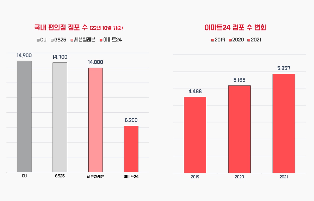 물론 이마트24는 시작점부터 불공평하긴 했습니다. 신세계는 지난 2013년 말에야 위드미 인수로 편의점 업계에 진출했는데요. 이는 주요 경쟁자들의 업력이 대부분 30년을 넘어선 시점으로 상당한 후발주자였기 때문입니다. 그리고 2017년 이름을 이마트24로 변경하면서 승부수를 띄웠는데요. 오히려 근래 들어 상황은 더욱 어려워지고 있습니다.