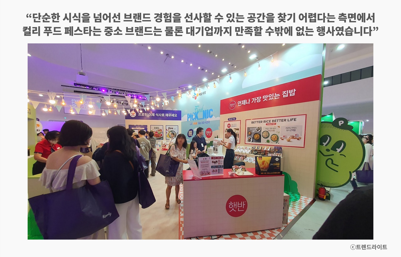 특히 이들 기업들에게 마땅한 브랜딩 공간이 없다는 측면에서, 이번 행사는 더욱 의미 있었을 것 같습니다. 식품 제조 기업들은 대형마트 시식 행사 정도를 제외하면 고객과의 접점을 만들기 어렵습니다. 기존 산업 전시회는 아무래도 B2B 성격이 섞여 있다 보니, 이번만큼이나 고객에게 초점을 맞춰 행사를 준비할 수 없고요.