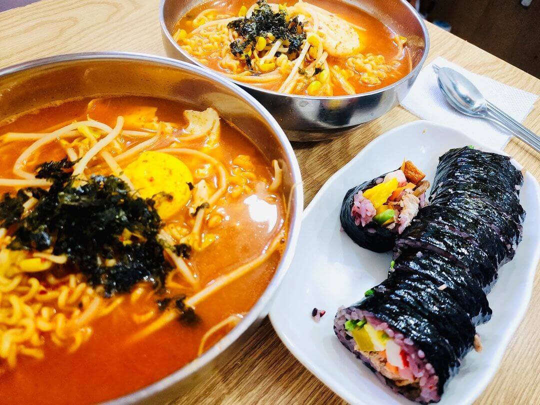 수제비 라면, 짬뽕라면, 부대 라면, 치즈 라면 등 다양한 라면 종류를 먹을 수 있어 라면 맛집으로도 인기. 단품으로도 먹을 수 있고 김밥과 주먹밥 등과 푸짐하게 세트로도 즐길 수 있어서 혼밥은 물론 해장하기에도 안성맞춤이다.
