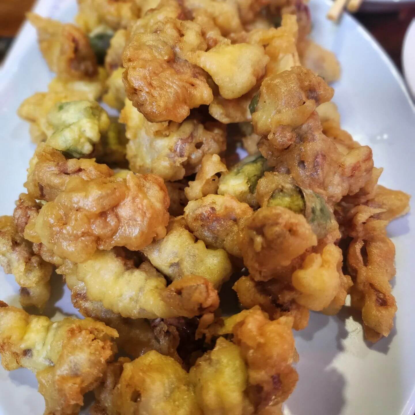 얇은 튀김옷의 옛날 통닭 스타일의 치킨이 인기지만 아는 사람은 치킨보다 똥집 튀김을 1티어 메뉴로 꼽는다. 바삭하게 튀겨낸 쫄깃한 똥집과 함께 튀긴 고추와 마늘이 느끼함을 잡아줘 시원한 맥주와 함께 먹기 제격이다.
