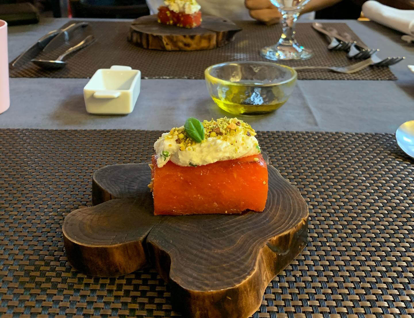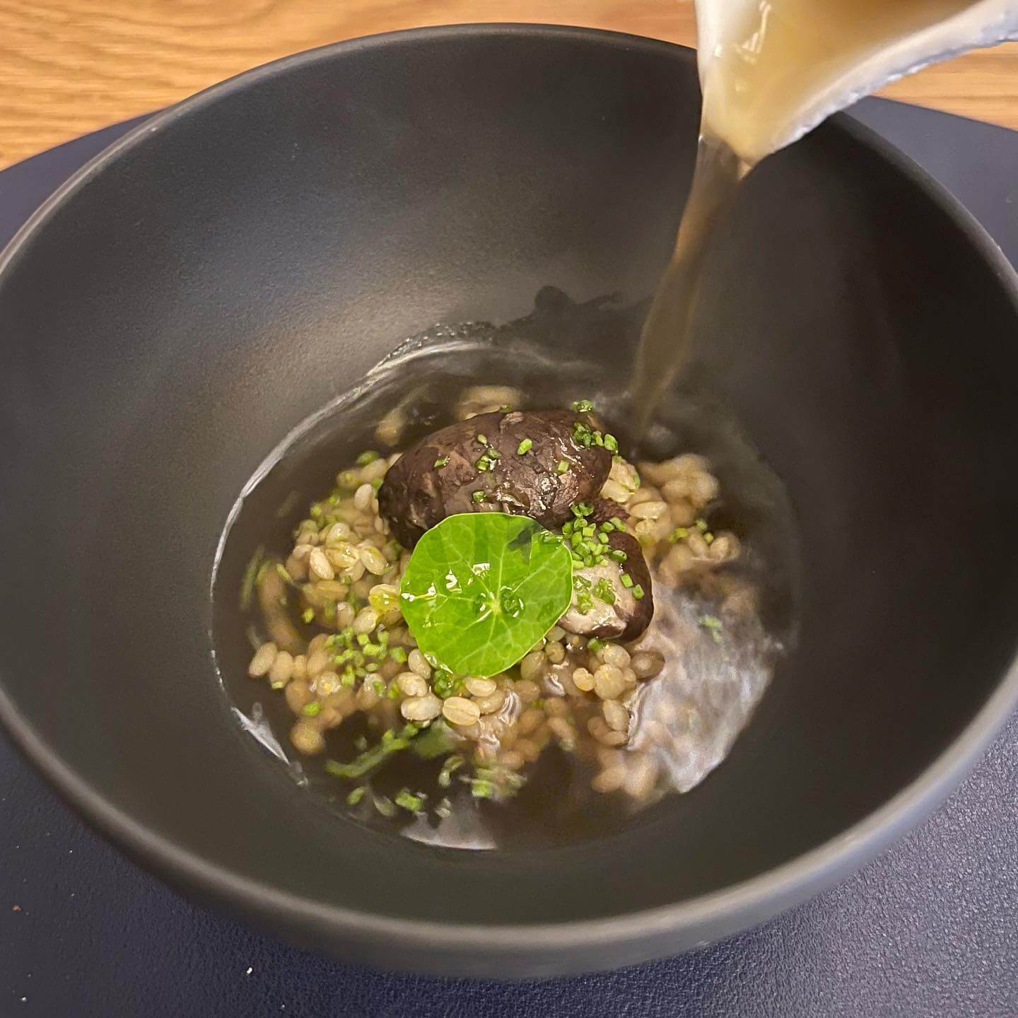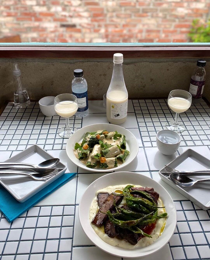 김부각, 깻잎, 홍가리비, 흑임자 등 익숙한 한국의 식재료를 활용하여 한식을 재해석한 요리들은 독창적이면서도 훌륭하다. 한우 꾸리살을 아이올리 소스로 양념한 육회를 김부각 위에 올려 먹는 숯불 향 한우 육회가 인기가 좋다.