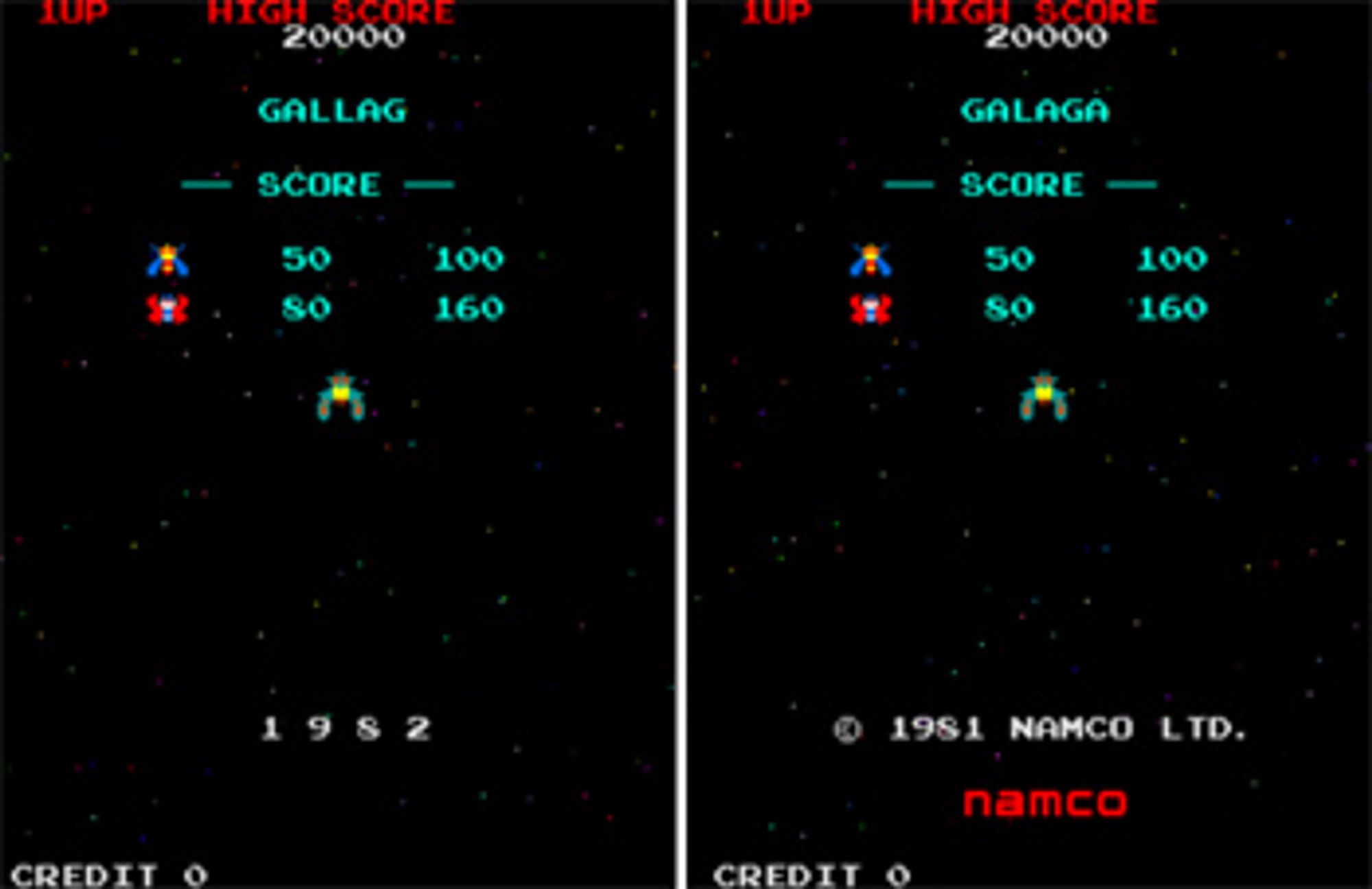 〈갤러그〉는 일본 반다이 남코(Bandai Namco)에서 제작한 게임으로, 원제는 〈갤러가(Galaga)〉였습니다. 하지만 청계천에서 해적판을 만들면서 남코사 타이틀이 사라지고 제목도 바뀌었죠.