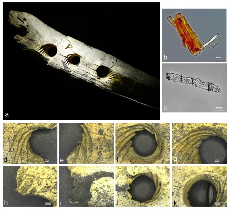 독일 튀빙겐 대학의 연구팀은 구멍의 마모 형태와 미세한 잔류물의 형태를 분석해 이 도구가 사실은 로프를 만드는 것이라는 사실을 알아냈습니다. 마모 형태가 질긴 식물성 소재에 의한 반복적인 마찰에 의한 것으로 보이는데다, 잔류물 역시 식물 소재로 나타났습니다.