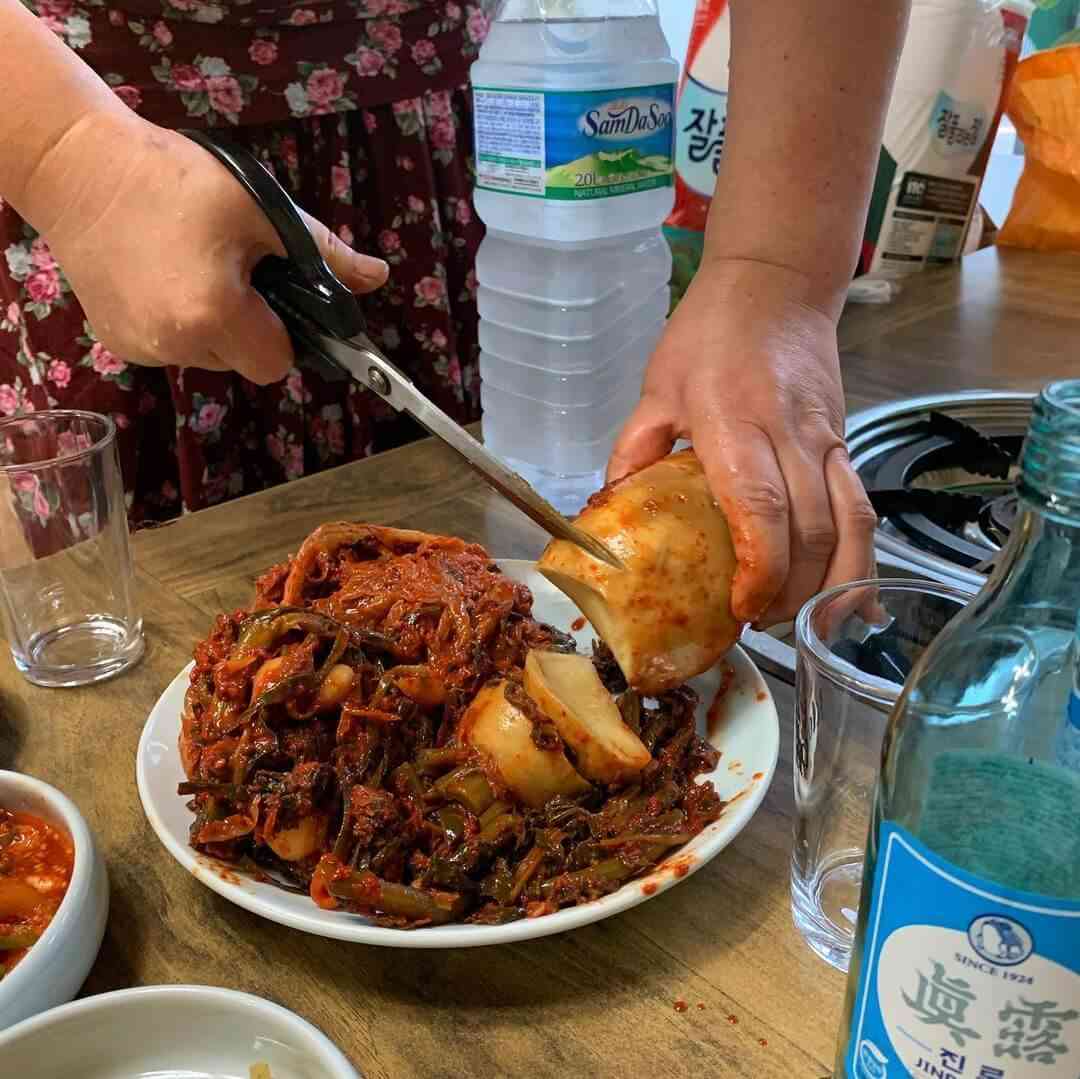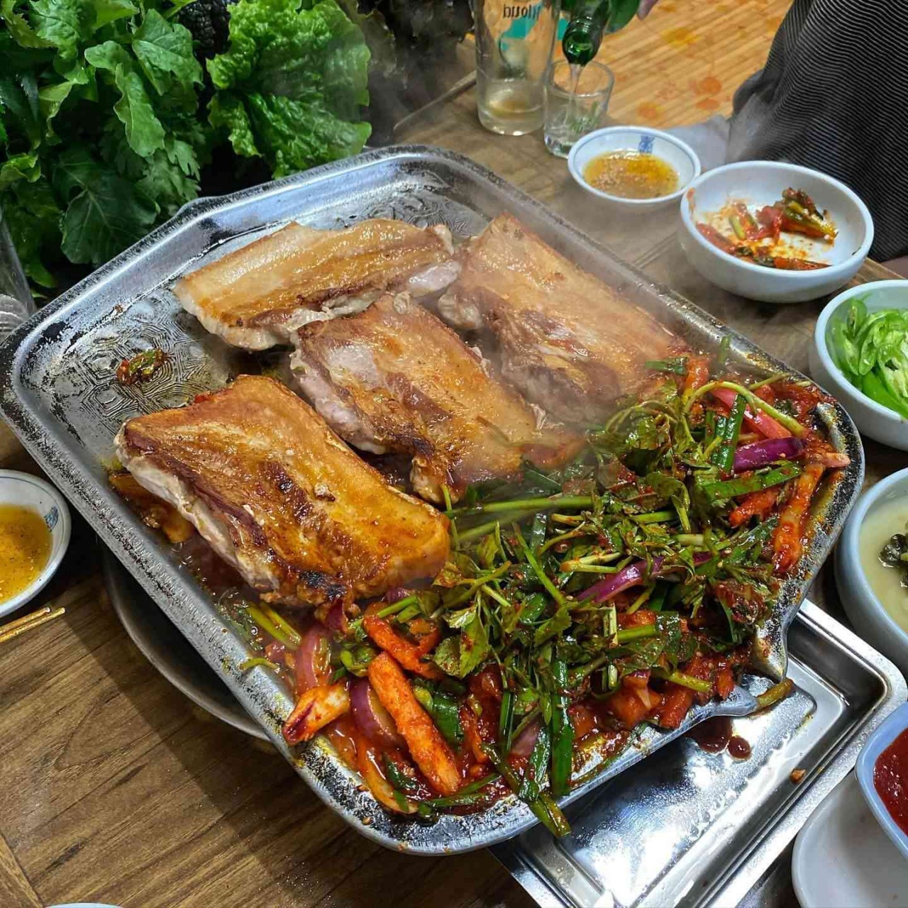 질 좋은 오겹살은 사장님이 전부 다 구워주기 때문에 맛있게 먹기만 하면 된다. 고기를 추가하면 1인분에 20,000원에 먹을 수 있고 고기 추가가 없을 땐 김치 값 15,000원에 리필을 하면 한 접시당 7,000원을 받는다. 100% 예약제에 하루에 3팀만 갈 수 있고 남은 음식은 포장해서 가지고 갈 수 있다.