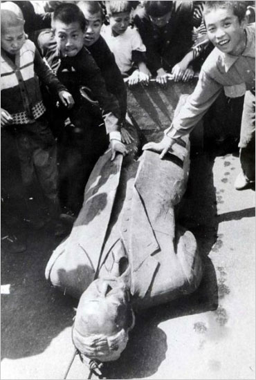 그런 초대 대통령 이승만에 대한 오늘날 수구·보수 세력들의 구애는 눈물겹게 이어지고 있다. 4·19로 파괴된 동상이 새로 세워지는 등 이른바 ‘국부’로 ‘건국의 아버지’로 그는 다시 태어나고 있다. 장기 독재로 민주주의를 파괴한 역사적 과오를 지우고 미화하려는 이들의 역사 왜곡은 이른바 ‘건국절’ 파동 등으로 계속되고 있는 것이다.- 관련 글 「“이승만 정부는 ‘독립운동가’가 중심이었다”고?」