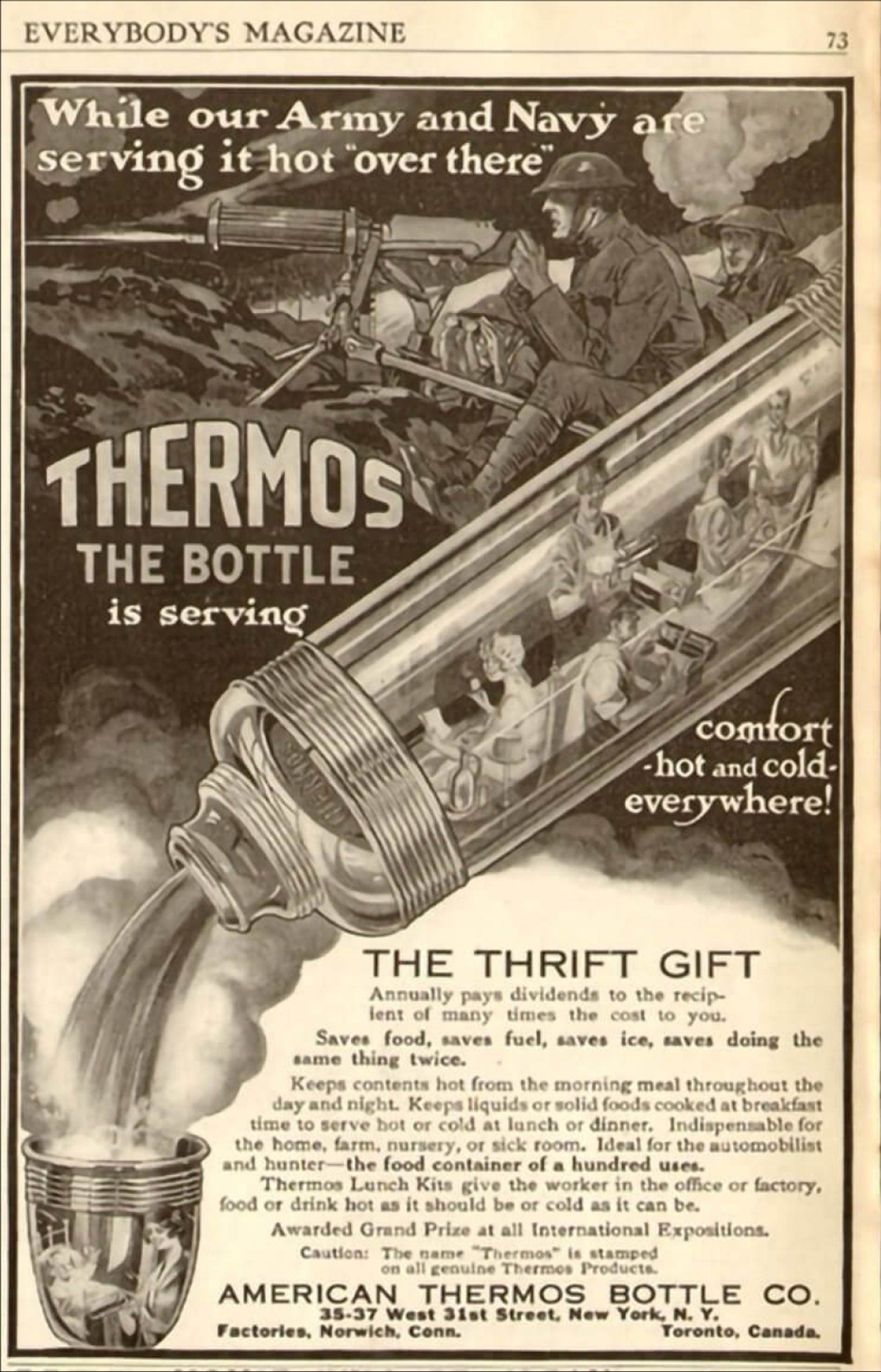 1907년에 세워진 미국의 써모스는 써모스 보온병을 알리는 데 큰 역할을 합니다. 1909년 알래스카-유콘-태평양 박람회에서 최우수상을 받았고, 그 외 7개의 세계 박람회에서 수상하면서 큰 관심을 이끌었거든요.