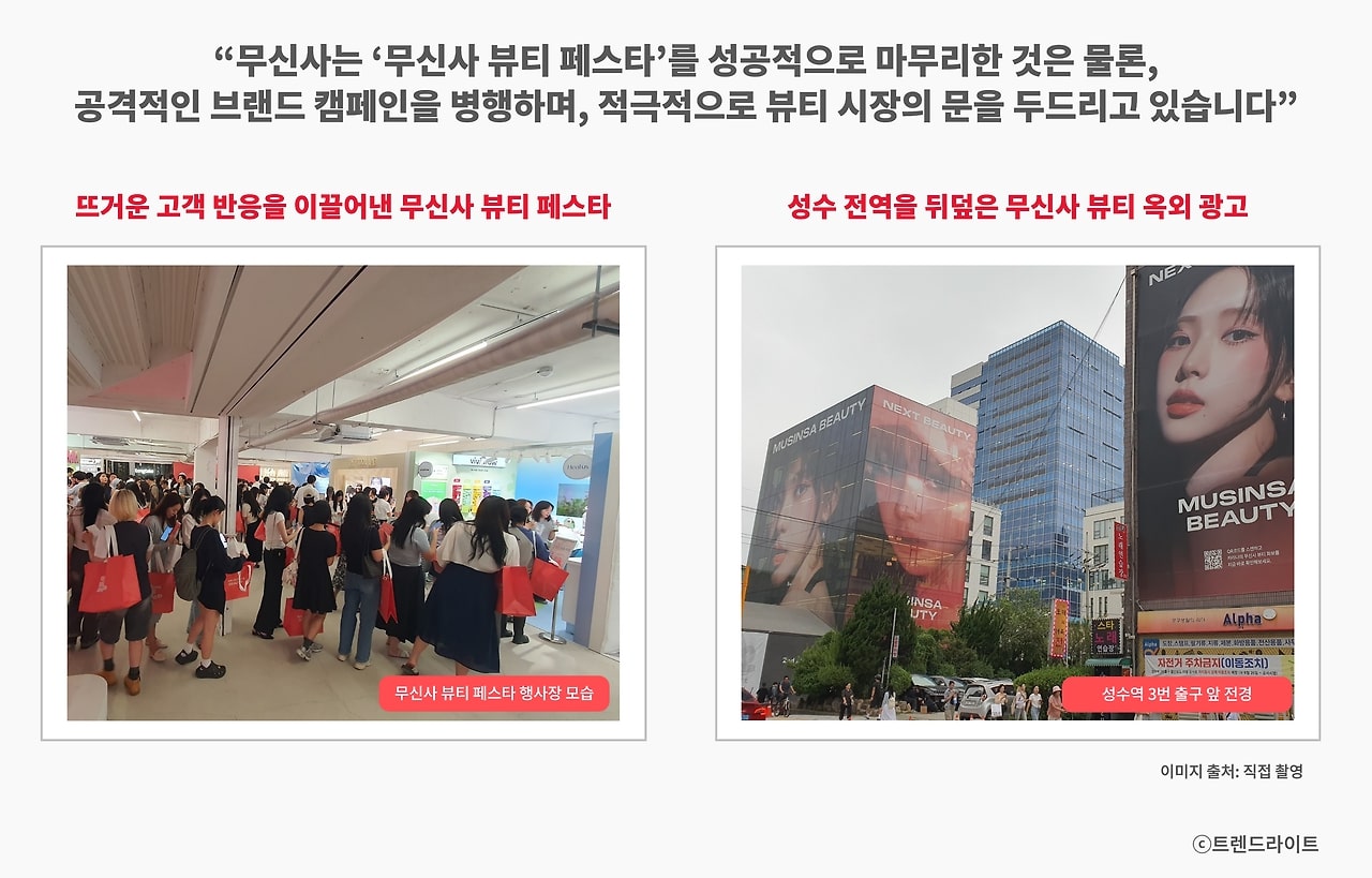 이번 페스타는 단순한 이벤트를 넘어 무신사 뷰티의 실적에도 긍정적인 영향을 미쳤습니다. 3주간의 전체 행사 기간(8/1~9/5) 동안 무신사 뷰티의 거래액은 전년 동기 대비 약 5.8배 증가했고, 같은 기간 오프라인 팝업에 참여한 브랜드의 거래액은 7.2배 늘었다고 하니 그 영향력을 실감할 수 있죠.