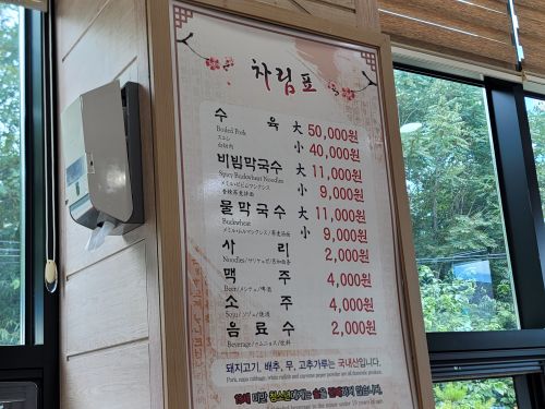 신발을 벗고 실내로 들어가니 우리보다 앞서 도착해 막국수를 기다리는 부지런한 사람들이 보였다. 그 사이를 비집고 들어가 자리를 잡았다. 물 막국수 두 개에 비빔 막국수 하나 그리고 맥주 한 병. 처음이었지만 자주 와본 것처럼 자연스럽게 주문했다. 이게 다 사전에 철저한 공부를 한 덕이다. 오픈 시간이라 주문이 밀리지도 않았고, 이거 달라 저거 달라 아우성치는 손님도 없으니, 직원들도 아직 컨디션이 좋다.