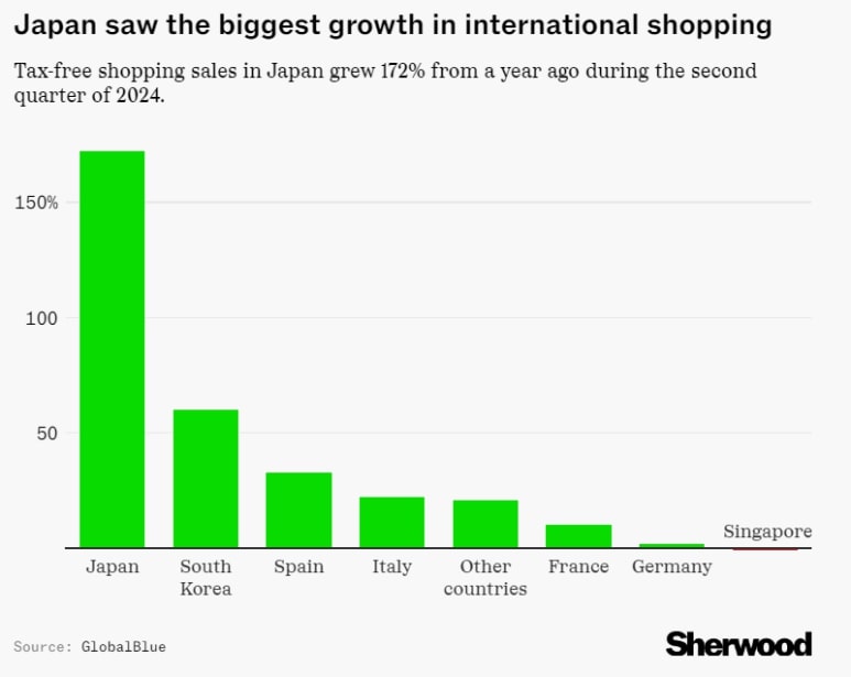 일본 엔화는 1990년대 이후 최저치를 기록했다. 관광객들은 일본으로 몰려들었다. 특히 프리미엄 브랜드의 저렴한 가격을 이용하기 위해 일본을 찾았다. 6월에는 1년 전보다 51.2% 증가한 300만 명 이상의 해외여행객이 일본을 방문한 것으로 추정되며, 이는 팬데믹 이전 수준을 뛰어넘는 사상 최고치다.