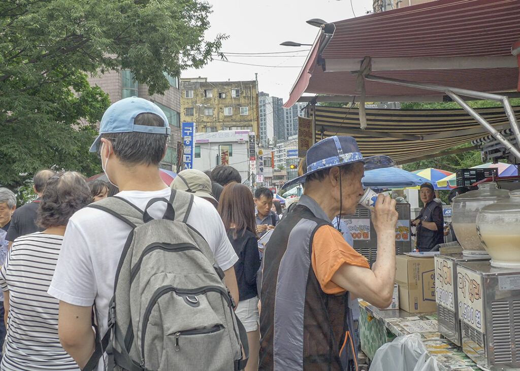 주민 추천메뉴 : 천원 냉커피&토스트 에디터 추천메뉴 : 천원 미숫가루레트로를 넘어 힙트로가 되어버린 어르신, 젊은이, 외국인의 조합을 볼 수 있는 그곳. 동묘 벼룩시장의 한가운데에는 ‘동묘벅스’라는 애칭의 가게가 있다. 천원 냉커피와 토스트를 판매한다. 지폐를 내면 종이컵에 국자로 커피를 떠주는데 무려 3초 컷으로 커피가 나온다.