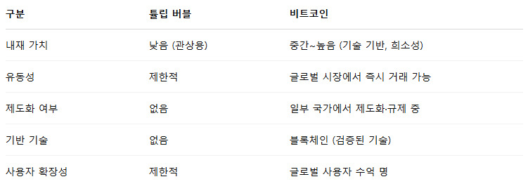 튤립은 일시적인 문화적 열광이었다면, 비트코인은 기술 기반의 시스템 전환이다.