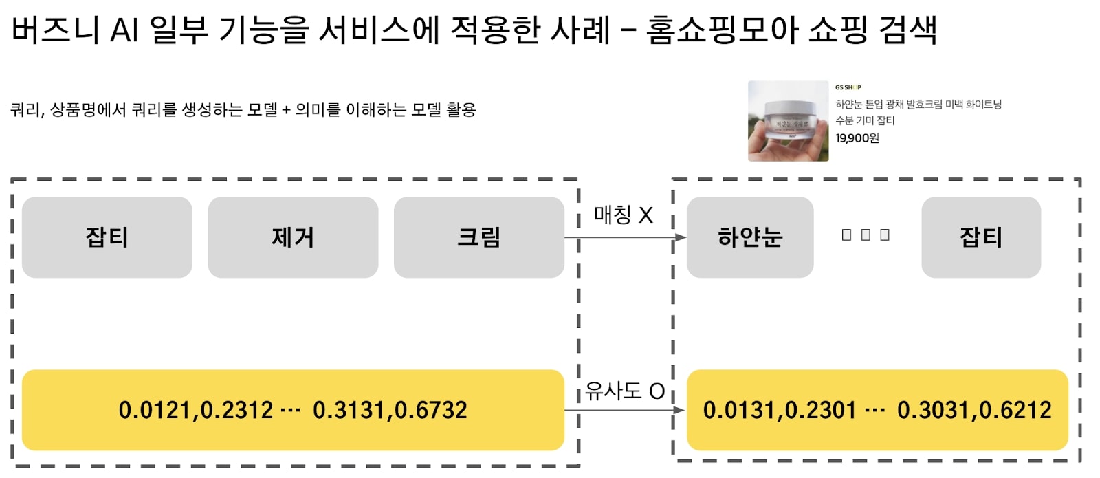 이승환: 그러면 그 버즈니 검색AI 사용료는 얼마인가요?남상협: 우선 AB테스트 비용으로 월 100만원에 제공하고 있어요. 대부분의 고객사는 테스트 후 도입으로 이어집니다. 고객사 상황에 따라 사용료가 책정되고요, 기존 검색엔진과 함께 사용하는 경우도 있습니다. 예를 들어 검색 결과가 없을 때가 있잖아요? 그때만 우리 검색 엔진으로 연결하는 거죠. ‘실패 검색AI’ 기술인데요. 기존 검색 엔진은 검색 결과가 없으니 매출이 0인데, 우리 검색 엔진은 관련 제품을 노출시켜서 매출을 늘려주는 겁니다. 이를 통해 버즈니 검색 엔진으로 전환한 기업이 꽤 돼요.
