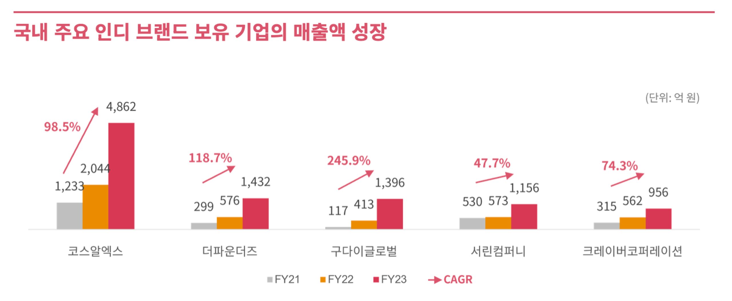 이처럼 수출이 활성화되면서 ‘시장 파이’가 커지게 되었고, 인디 화장품 브랜드도 충분히 판매 경로를 마련할 수 있게 됐습니다. 국내에서는 성분 중심의 ‘제품력 위주’의 소비가 인디 화장품 브랜드에게 ‘기회’를 제공했고, 해외에서는 K-뷰티의 인기 덕분에 글로벌 수출이 늘어나 매출과 영업이익이 파격적으로 늘어났다고 볼 수 있습니다.
