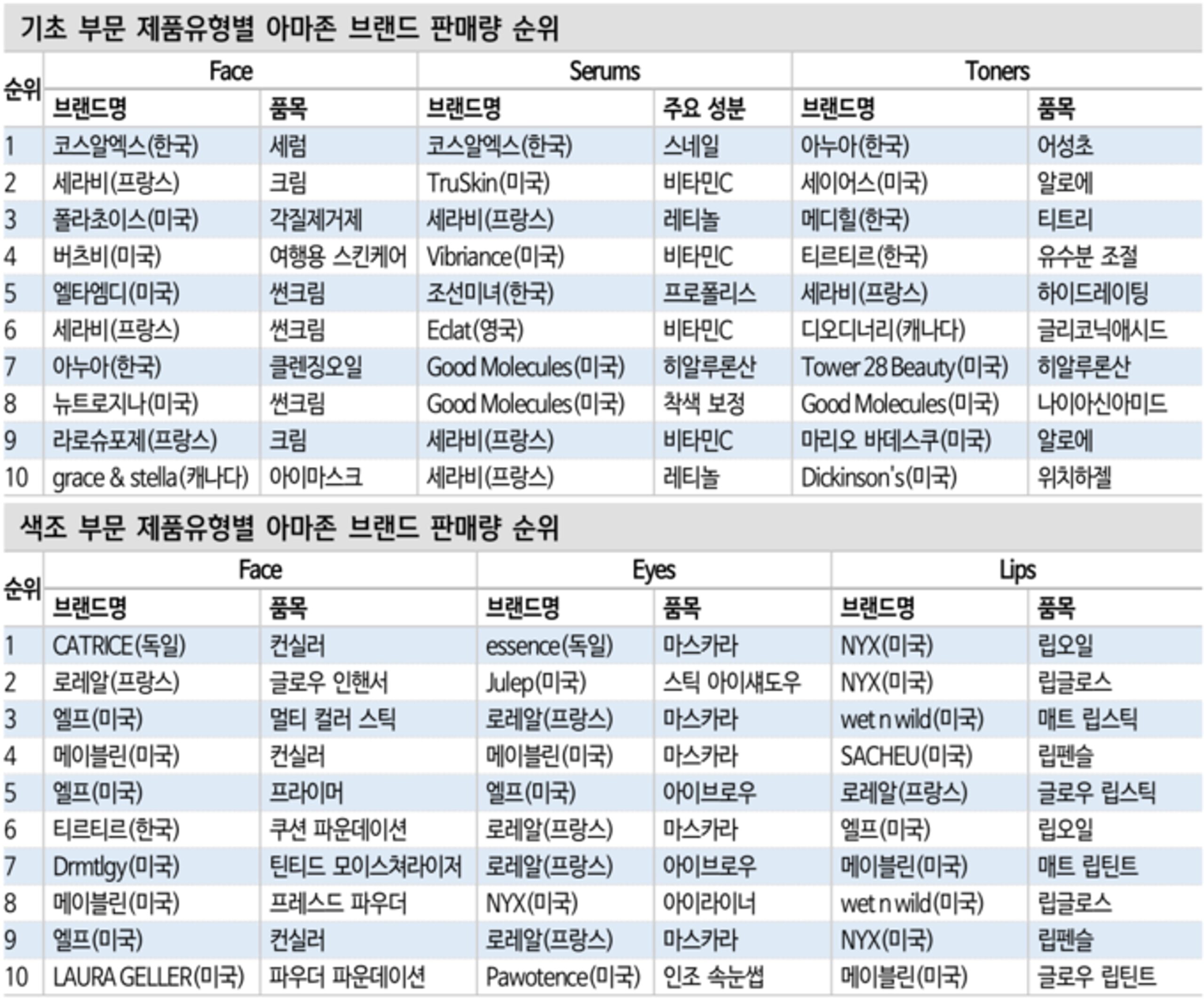 두 번째 소비 변화는 ‘K-뷰티’의 인기입니다. 몇 년간 이어진’ K-컬처’의 인기로 인해 ‘K-뷰티’ 역시 주목받게 됐습니다. 특별한 점은 ‘중국’ 이외 국가에서의 높아진 관심인데요. 이전에는 ‘화장품 수출’하면 중국을 가장 먼저 떠올렸습니다. 한국 화장품의 수출 국가로 중국은 독보적이었죠.하지만 최근 수출 지형도를 보면 미국, 일본, 유럽 등으로의 수출이 높은 성장세를 보이고 있습니다. 24년 6월 통계청 자료에 따르면, 중국 수출액은 2억 8000만달러로 23년 같은 기간 보다 2.9% 증가에 그쳤으나 2위 미국(2억7000만달러)은 60.5% 크게 뛰었고 3위 일본(1억7000만달러)은 18.3% 늘어났죠. 미국 수출액이 중국 수출액을 곧 넘어설 것이라는 예상까지 나옵니다. 미국에서는 코로나 이후 온라인으로 화장품을 구매하는 흐름이 생겼고, 덕분에 아마존에서 화장품 분야별 Top10에 우리나라 브랜드를 쉽게 발견할 수 있습니다.
