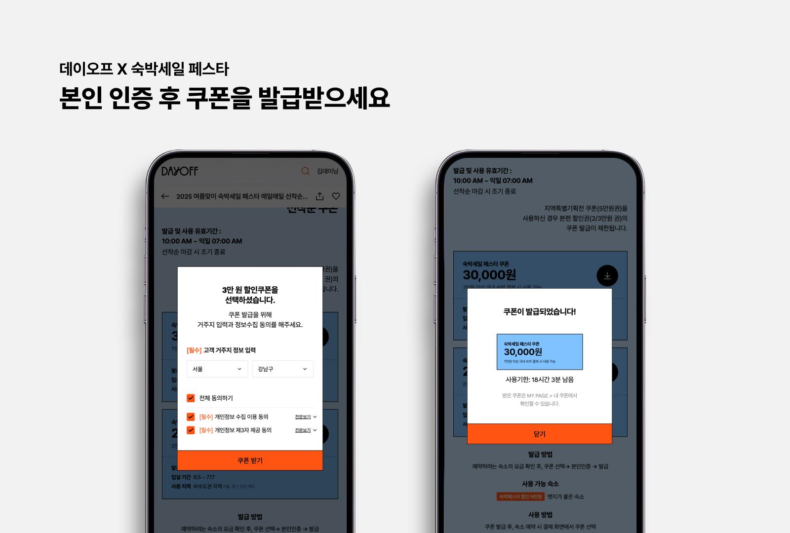 이번 숙박페스타 쿠폰은 한정 수량으로 발급된다. 현재 대형 여행 플랫폼에서는 2만원 쿠폰이 마감되었고, 괜찮은 숙소들은 예약 경쟁이 치열하다. 쿠폰을 아직 받지 못했다면, 데이오프에서 확인하자. 데이오프에서는 아직 2만 원권, 3만 원권 숙박페스타 쿠폰을 발급받을 수 있다.