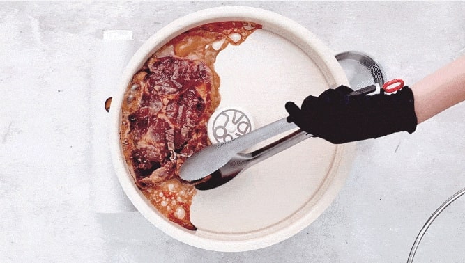 손병호: 아궁이에서 불을 때면 뜨거운 열기가 생기죠. 그 열기가 굴뚝으로 빠져나가기 전 지나가는 곳을 ‘고래’라고 해요. 여기에 열기가 갇히며 온돌을 따뜻하게 해주는 거죠. 마찬가지 원리로 아버지도 그릴팬을 이중으로 설계해서 아궁이 역할을 하는 하부 용기와 구들판이라고 부르는 상부 용기를 합쳐서 열기가 밖으로 새어 나가지 않고 갇혀있게 했어요. 직관적으로 말하면 프라이팬과 에어프라이어를 결합했다고 보시면 되고요. 그러니 일반 팬이 아닌 오븐처럼, 고기를 전체적으로 익히며 ‘겉바속촉’이 만들어져요.