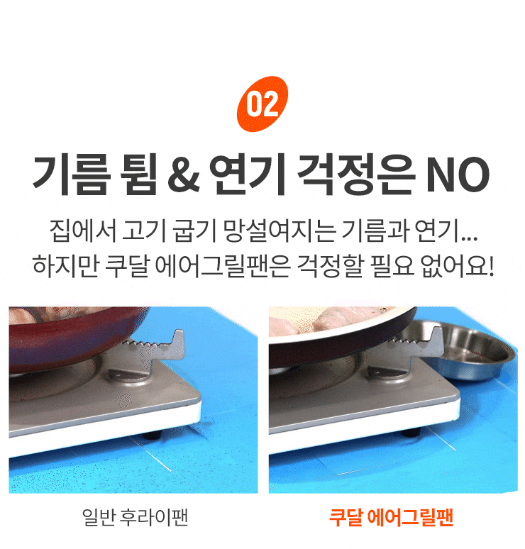 예로 기름때를 씻기 어렵다는 분들이 있었어요. 그래서 구들판 가운데를 좀 더 높여서, 기름이 자연스럽게 외곽으로 빠지고, 거기서도 기름구멍 쪽으로 스스로 흘러 기름받이로 떨어지게 했어요. 또 기름이 흐르는 길을 손가락이 살짝 들어갈 수 있을 정도로 넓혀서, 기름이 고일 걱정도 없고 세척도 쉽게 하도록 개선했습니다. 또 열기 배출 구멍을 6개에서 12개로 늘리고, 세라믹 코팅 색상도 좀 더 고급스럽게 했어요.