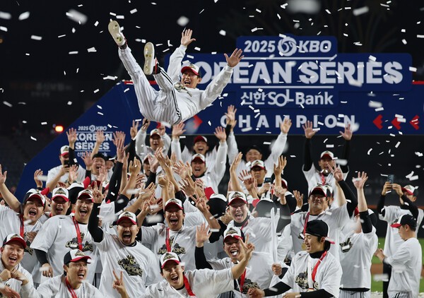 톨허스트 2승·김현수 8타점 활약, 염경엽 감독 우승 트로피 안아