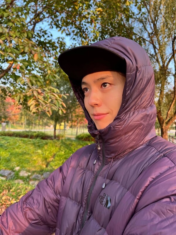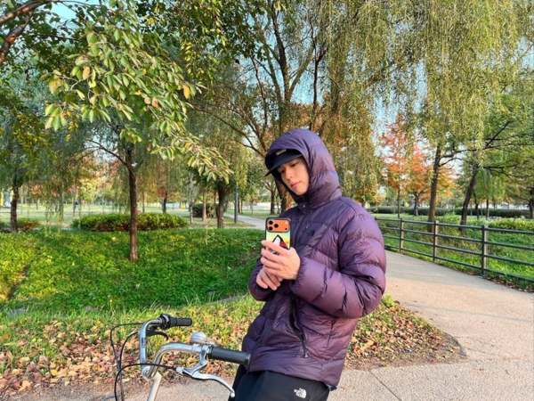 그는 현재 본인이 모델로 활동 중인 노스페이스의 제품을 착용한 채 자전거에 앉아 여유로운 모습을 드러냈다. 단풍이 물든 나무와 푸른 잔디밭을 배경으로 일상의 분위기를 담았다.