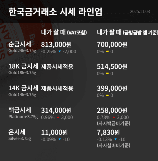 2일(현지 시각) 기준, 국제 금 현물 가격은 온스당 4,003달러(약 571만 원) 수준에서 거래됐다. 이를 환산하면 1그램당 약 18만4천 원, 1돈(3.75g)당 약 69만 원 수준이다. 국내에서는 살 때 81만 원, 팔 때는 70만 원에 거래되고 있다.