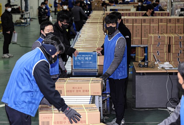 전국 85개 시험지구에 문답지 배부 시작, 13일 수능 당일엔 1310개 시험장으로 운반 예정