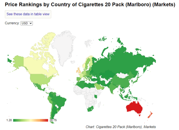 현재 한국에서 판매되는 일반 궐련 한 갑 가격은 4500원 수준으로, OECD 평균 담뱃값인 8.54달러(한화 약 1만1800원)의 절반 수준에도 미치지 못한다. 한국 담뱃값은 전 세계 72위(2025년 기준) 정도다.
